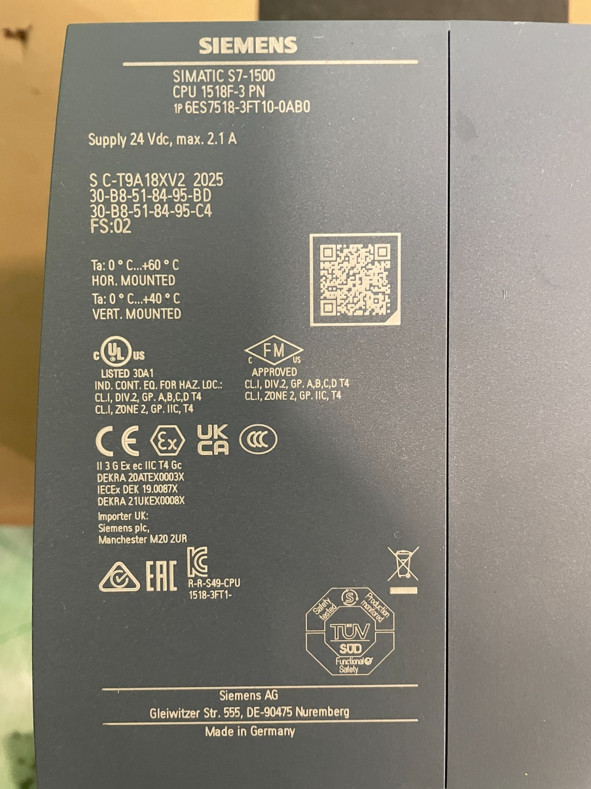Siemens 6ES7 518-3FT10-0AB0. 6ES7518-3FT10-0AB0. CPU 1518F-3 PN. (UK/EU Read)