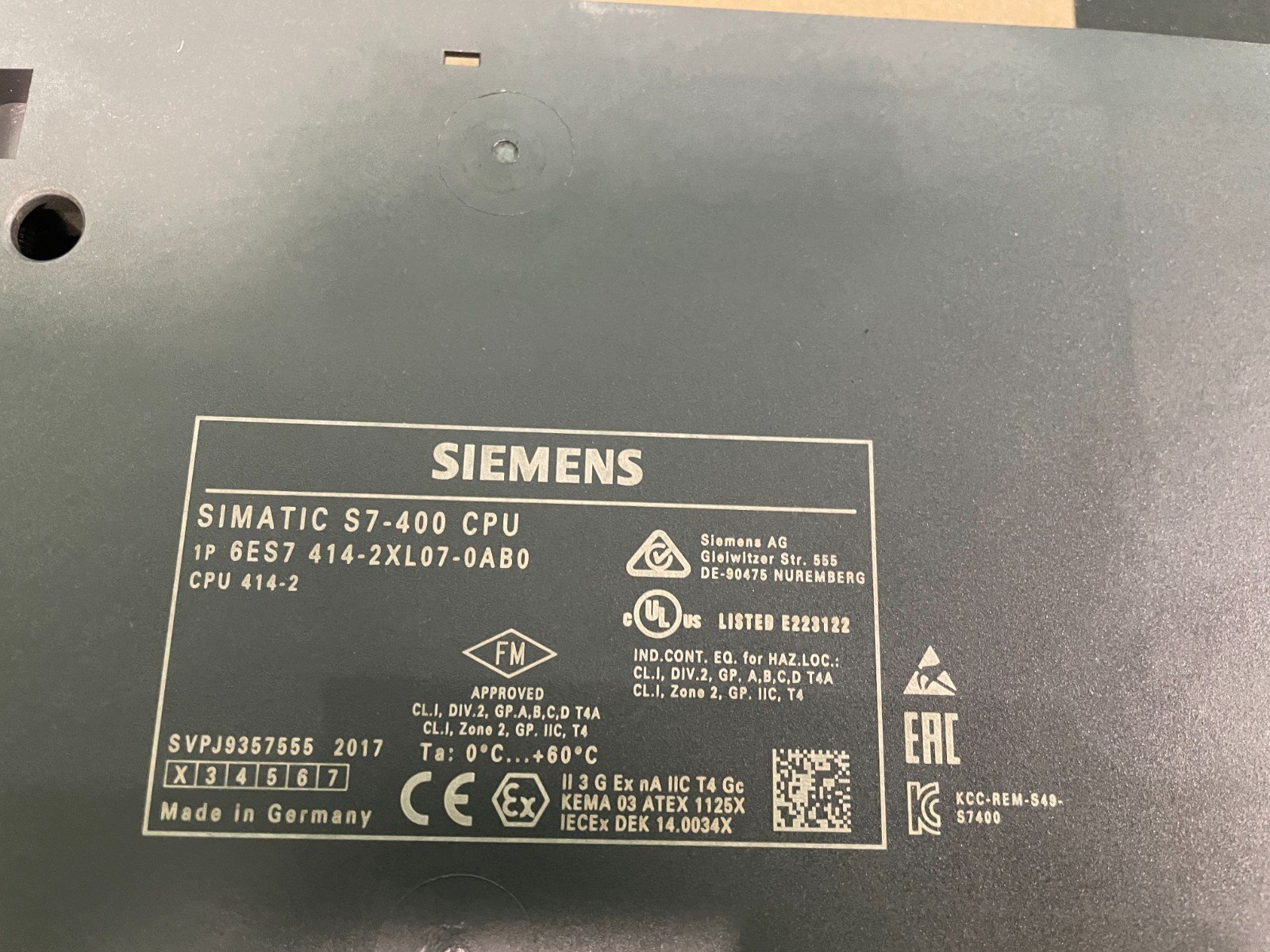 Siemens 6ES7414-2XL07-0AB0. CPU 414-2. (UK And EU Please Read)